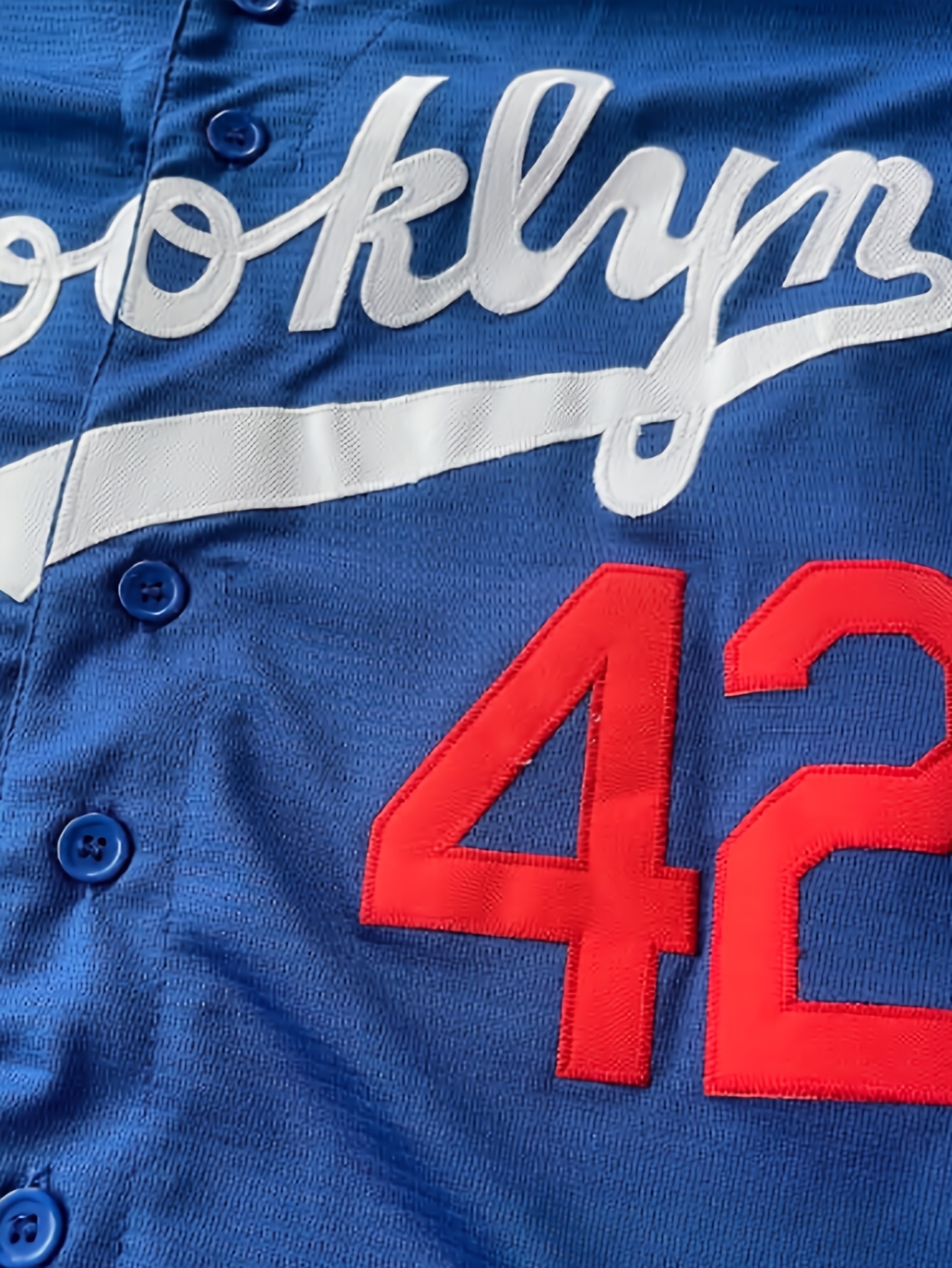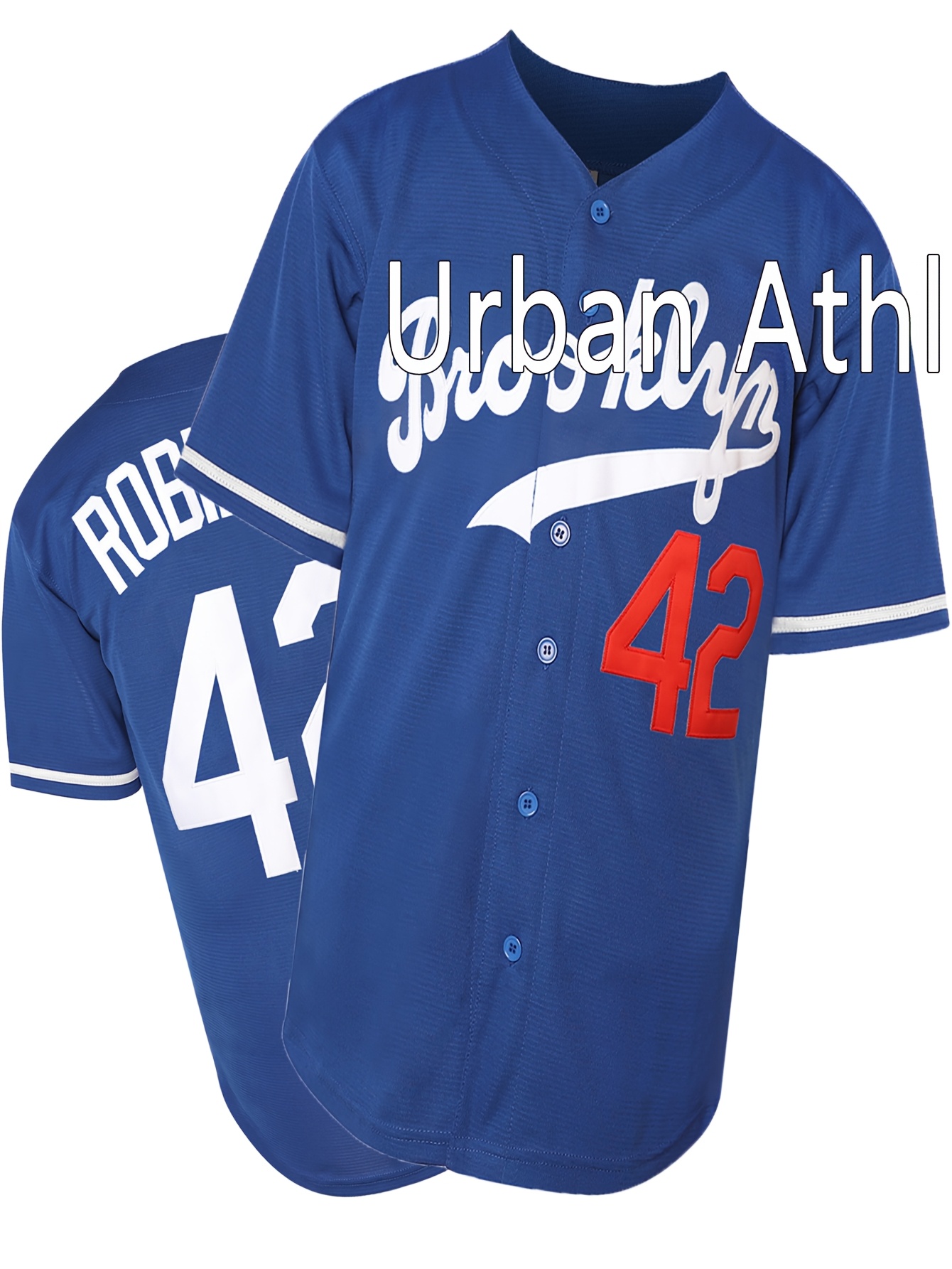 Blue 42 Baseball Jersey All Stitched Embroidery V Neck Short Sleeve Baseball Shirt, Breathable Button-Up Sports Uniform For Training Competition Party