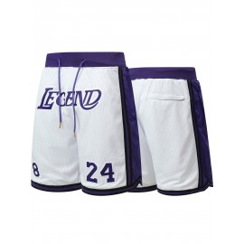 1pc Men'S Embroidered Basketball Shorts - Breathable Polyester Sports Shorts with Slight Stretch, Elastic Band, for Training, Workout, Casual & Team Sports - Loose Fit, S-3XL