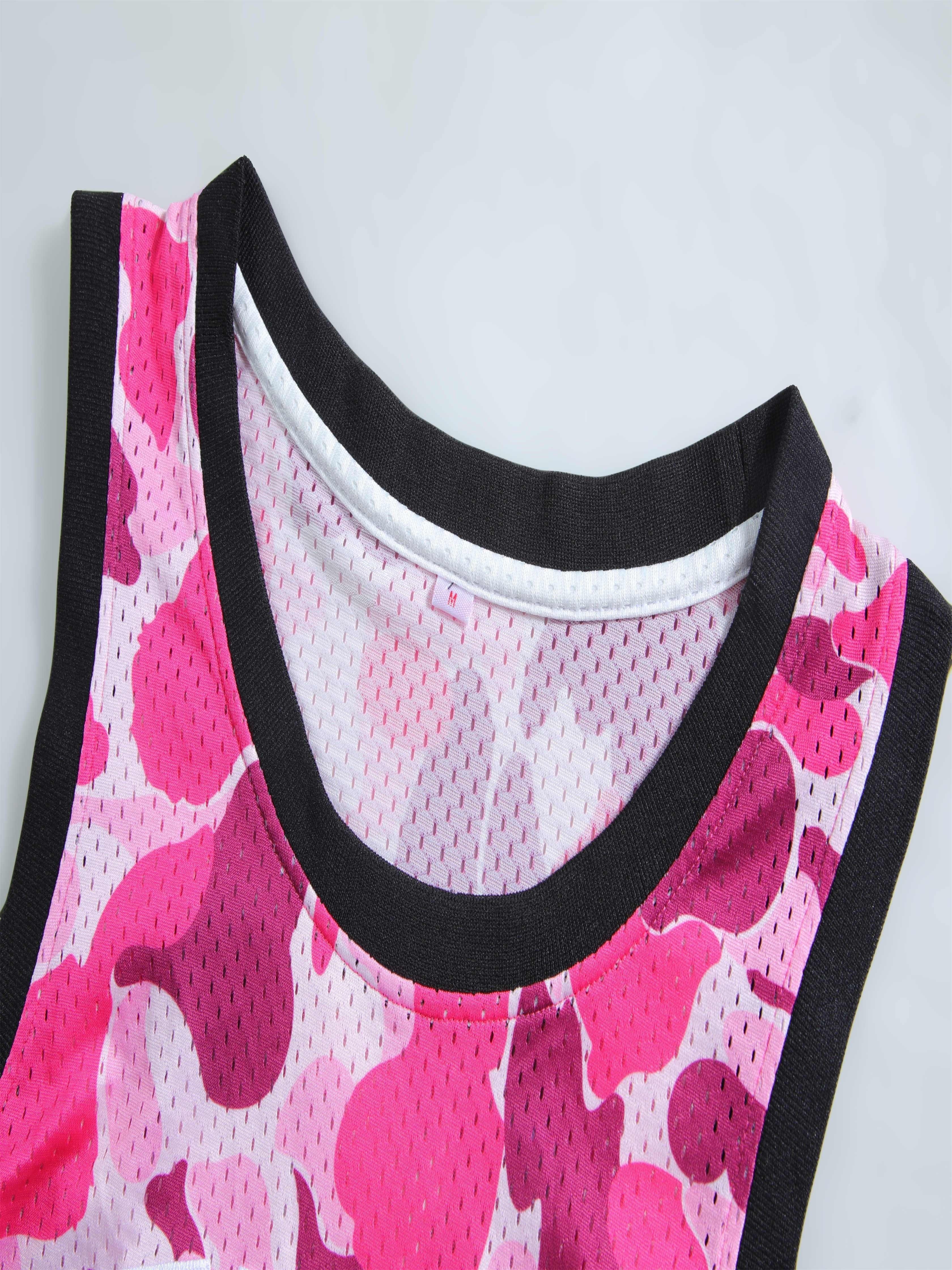 Men's #14 Retro 90s Hip-Hop Basketball Jersey - Pink & White Camo Design,