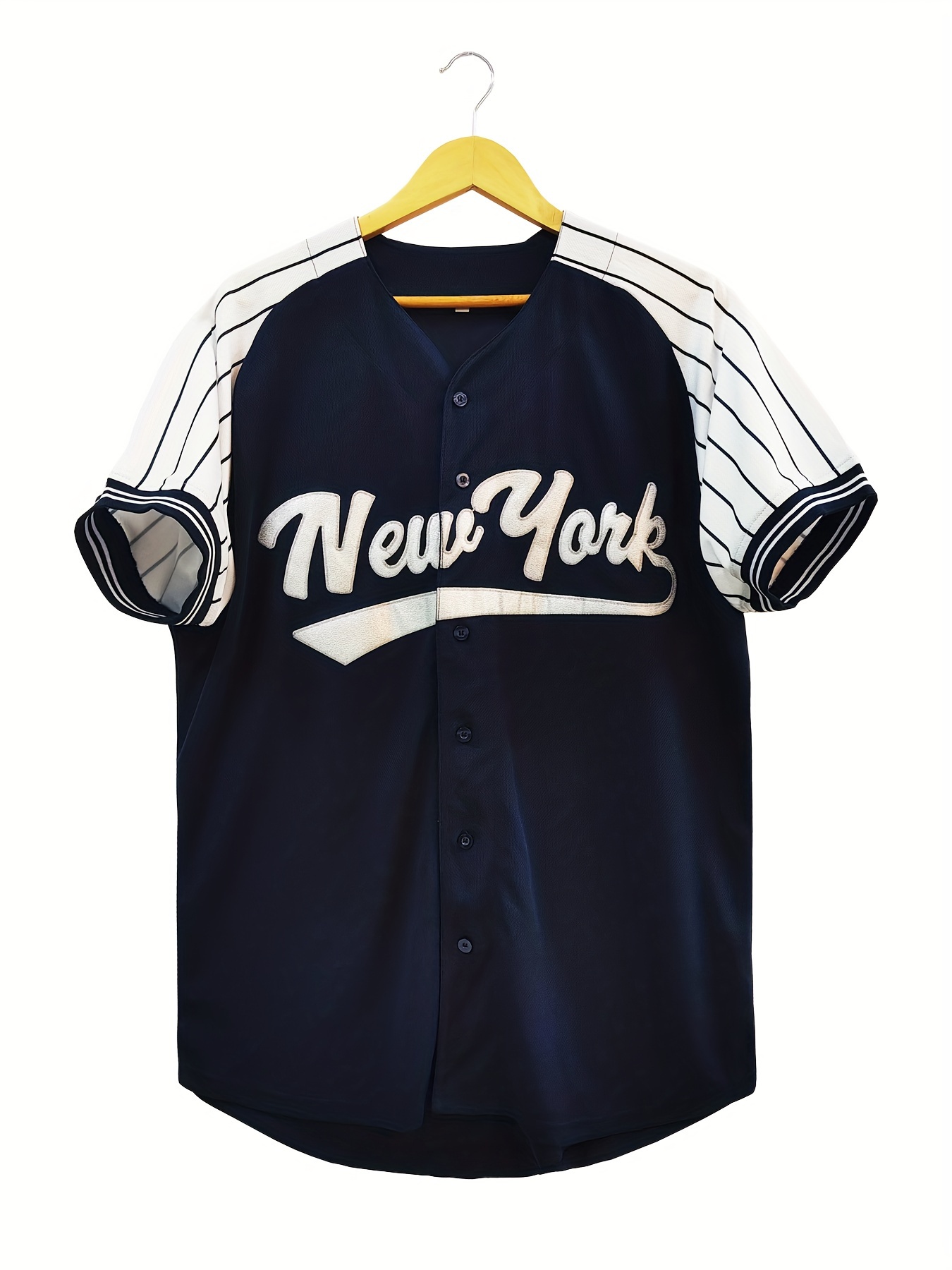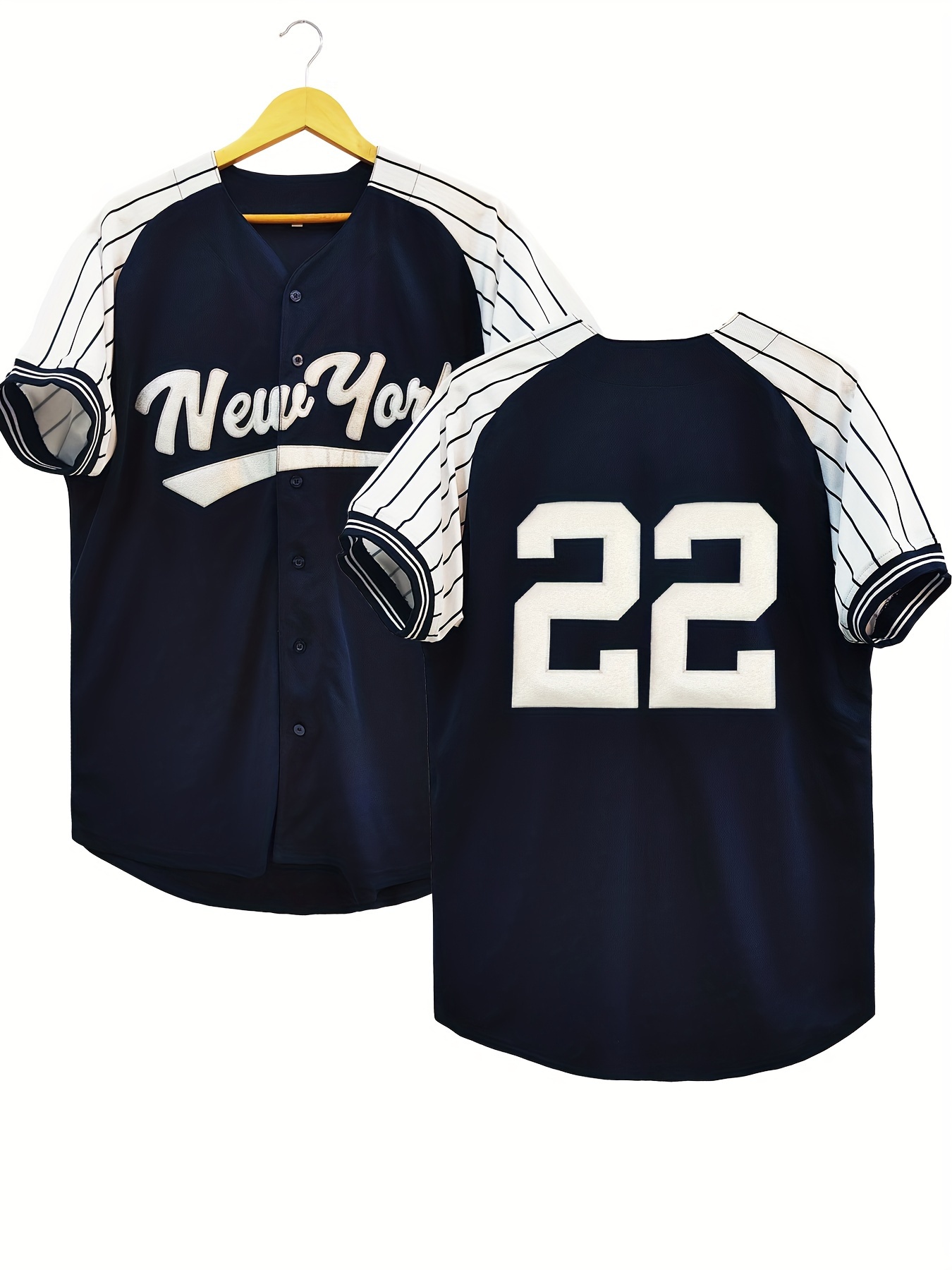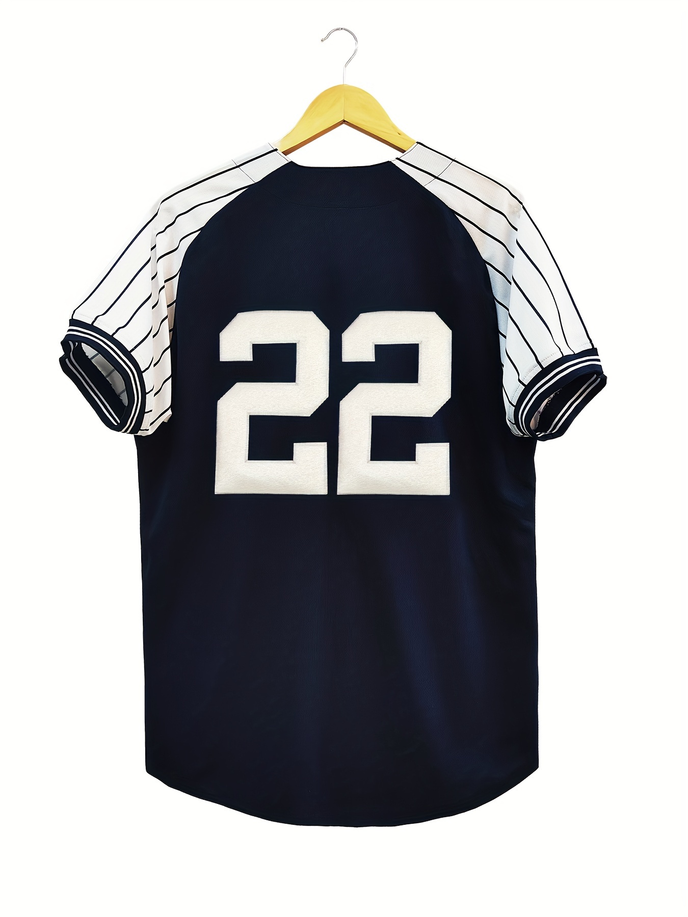 Men's #22 Retro Baseball Jersey - Vintage New York V-Neck Shirt, Breathable Loose Fit Short Sleeve for Training, Casual & Holiday Wear (Navy/White/Yellow), Sports Attire, Outdoor Activity Apparel, Sporty Look, Detailing, Durable Sportswear