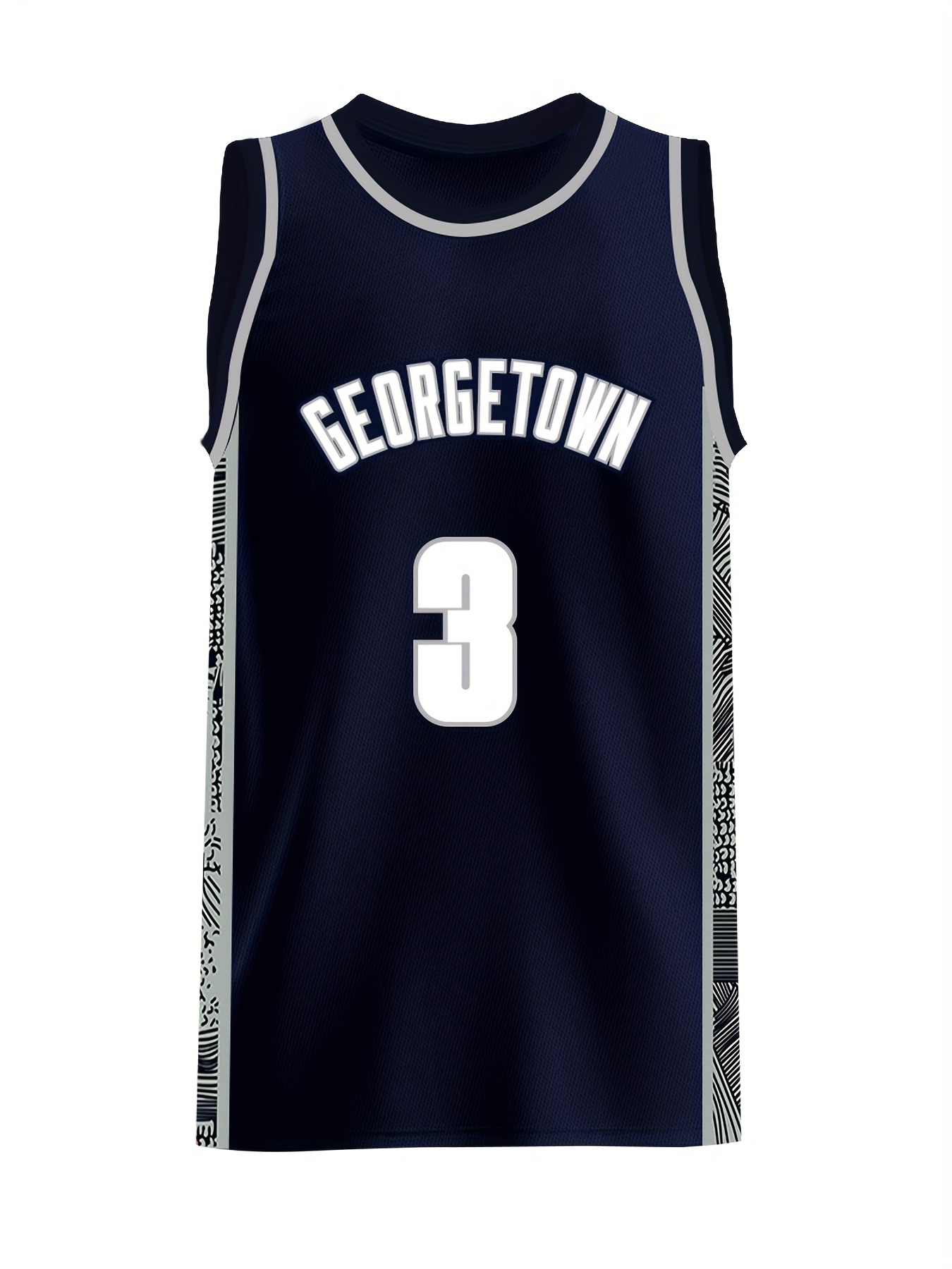 Men'S #3 Embroidered Basketball Jersey - Navy Blue & White Sleeveless Sports Shirt, Breathable Polyester, Fashionable Streetwear for Casual, Party, or Training, Sizes S-XXXL, Party Casual Jersey | Jersey Style Top | Glossy Fabric