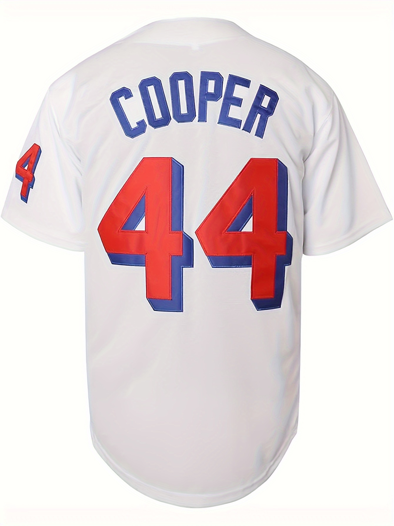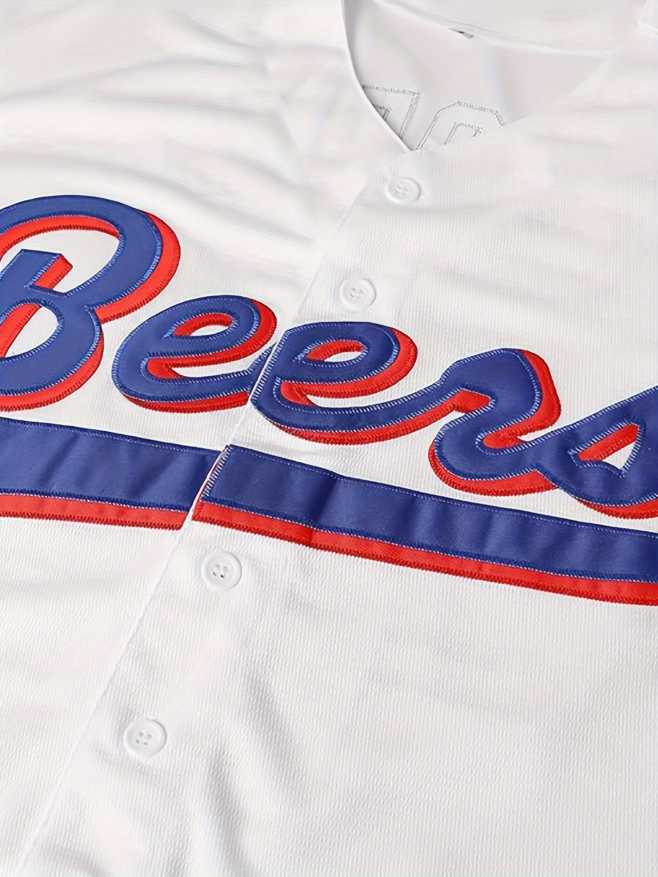 Men's #44 Beers Embroidered Baseball Jersey - Breathable, Comfort-Fit, V-Neck, Button-Up, White with Red & Blue Stripes, Polyester, Casual & Sporty, Sizes S-3XL
