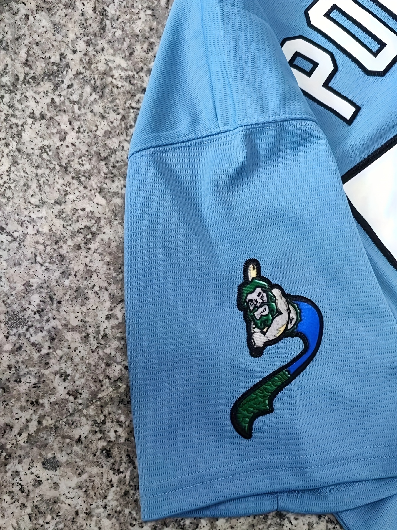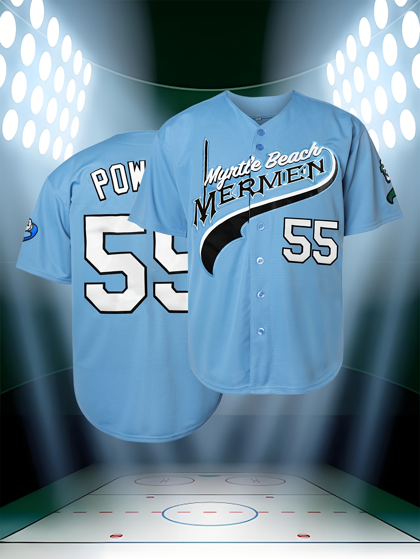 Men's #55 Blue Baseball Jersey - Embroidered V-Neck, Retro Mets Design with "MYTLE BEACH MERMAID" Print, Loose Fit for Casual & Outdoor Wear, Sizes X-XXXL, Sports Casual Wear | Casual Sports Apparel | Embroidered Sports Jersey