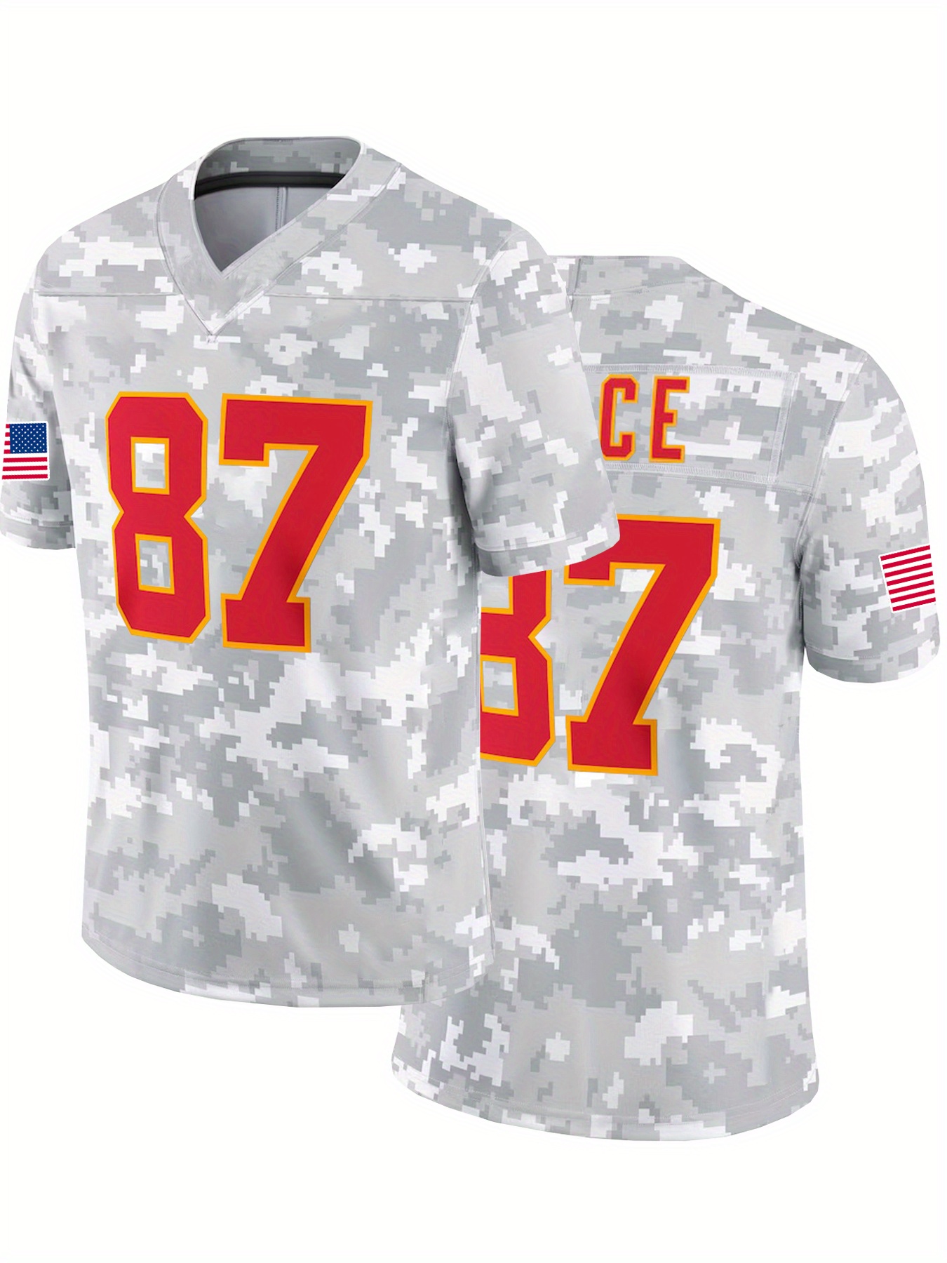 Men's #87 Retro Grey Sports Jersey - Breathable Polyester V-Neck Loose Fit T-Shirt with Camouflage Pattern All-Season Top for Football,, Parties, Streetwear | Machine Washable, Unisex Design for Men & Couples, Sports T Shirt, Party Attire, Detailing