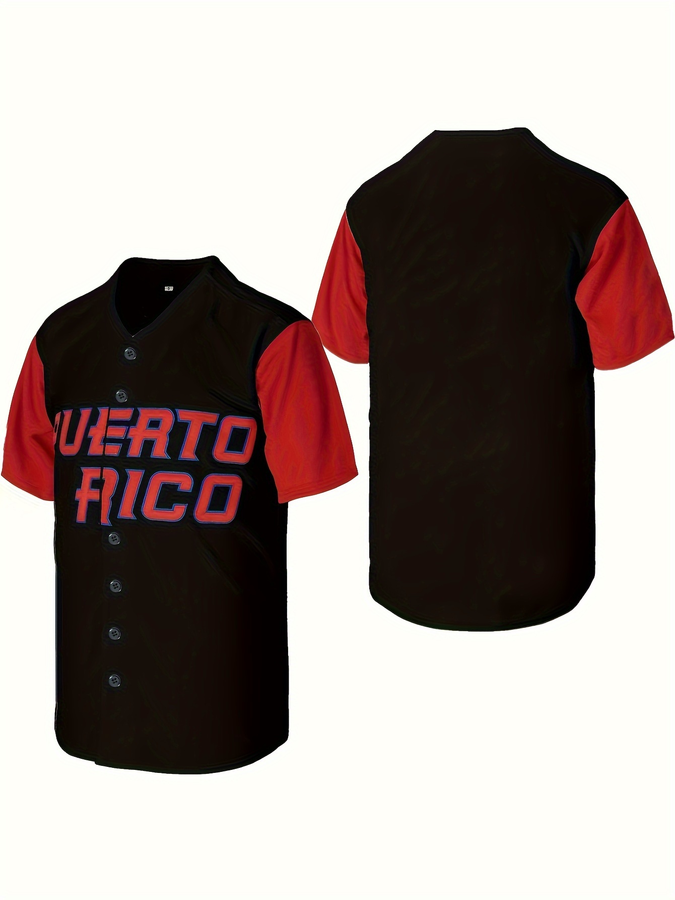 Men's Baseball Jersey Sports Training Black Breathable Comfortable Casual Puerto Rico S-3XL