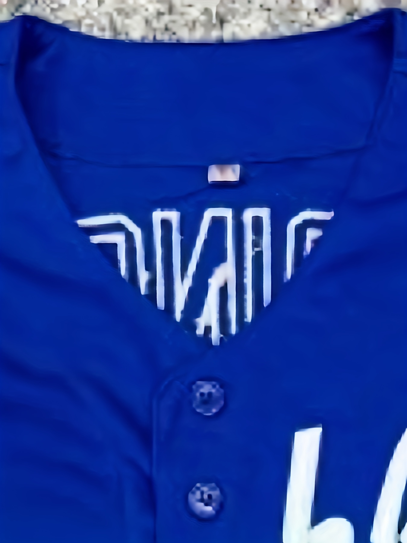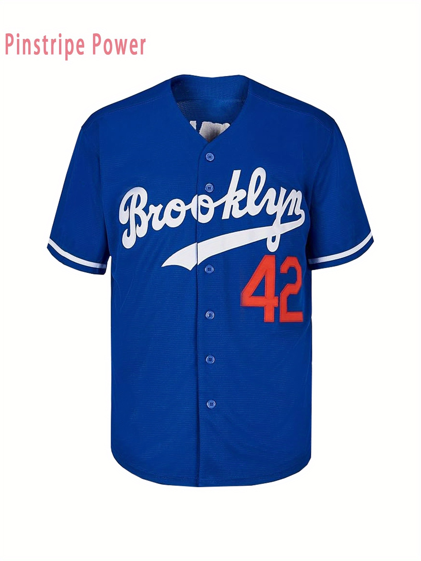 Men's Casual #42 Blue Baseball Shirt - Loose Fit V-Neck Button-Up with Brooklyn & Number Embroidery, 100% Polyester, Machine Washable, Sizes S-3XL for Training, Team Sports, Daily Wear & Outdoor Activities