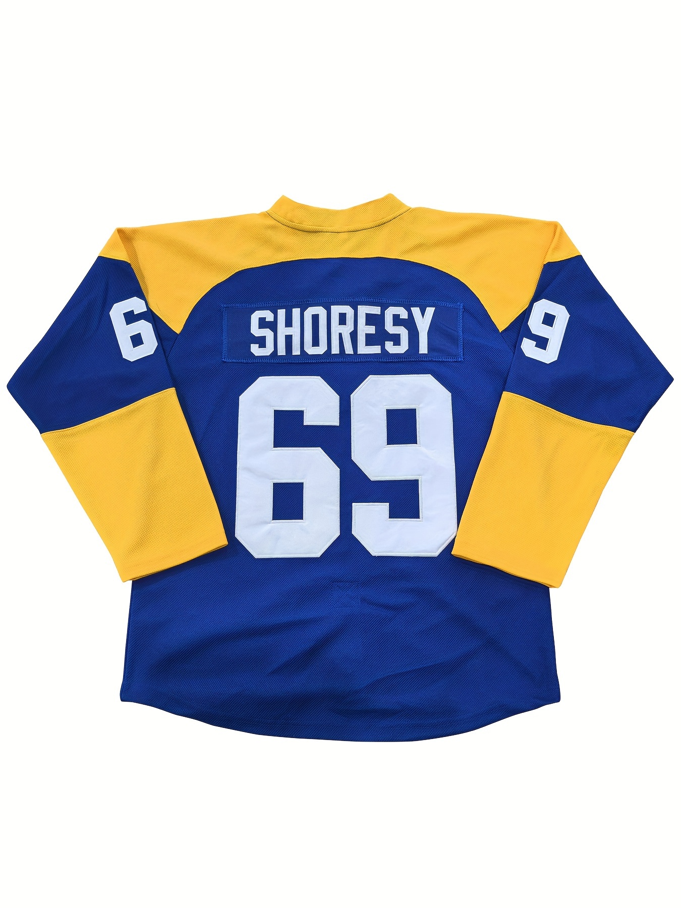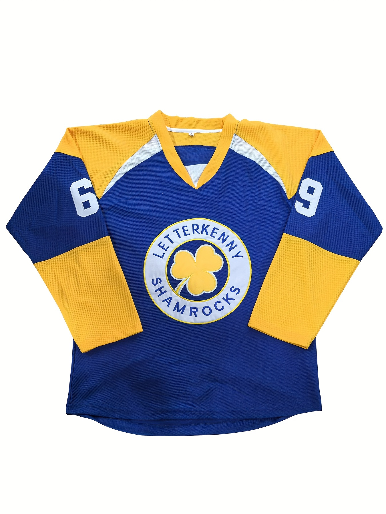 Men'S Embroidered Hockey Jersey - Letterkenny Shamrocks, Shoresy #69, Sports Fan Gear, Polyester V-Neck, All Seasons Wear, Outdoor & Casual, for Parties & Games - Blue