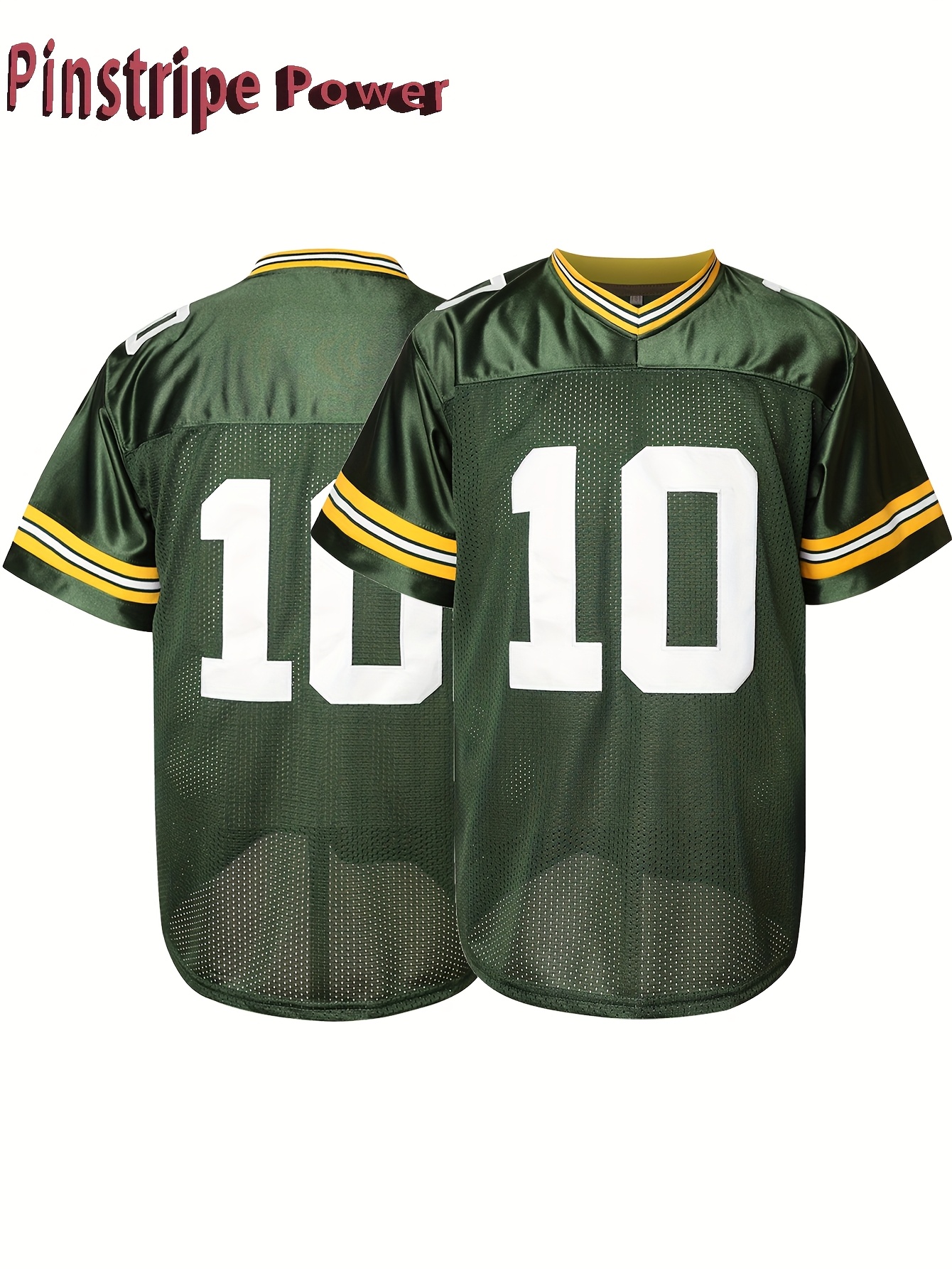 Men's Green #10 Rugby Shirt - Breathable Polyester V-Neck Sports Top, Loose Fit for Running, Hiking & Casual Wear, Machine Washable, Spring/Summer/Fall, Sporty Appearance, Detailing, Comfortable Fabric
