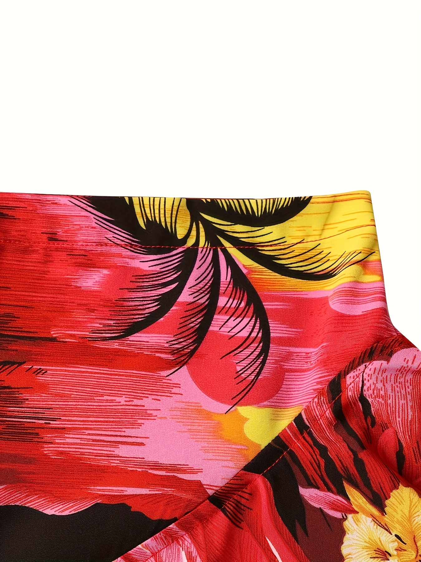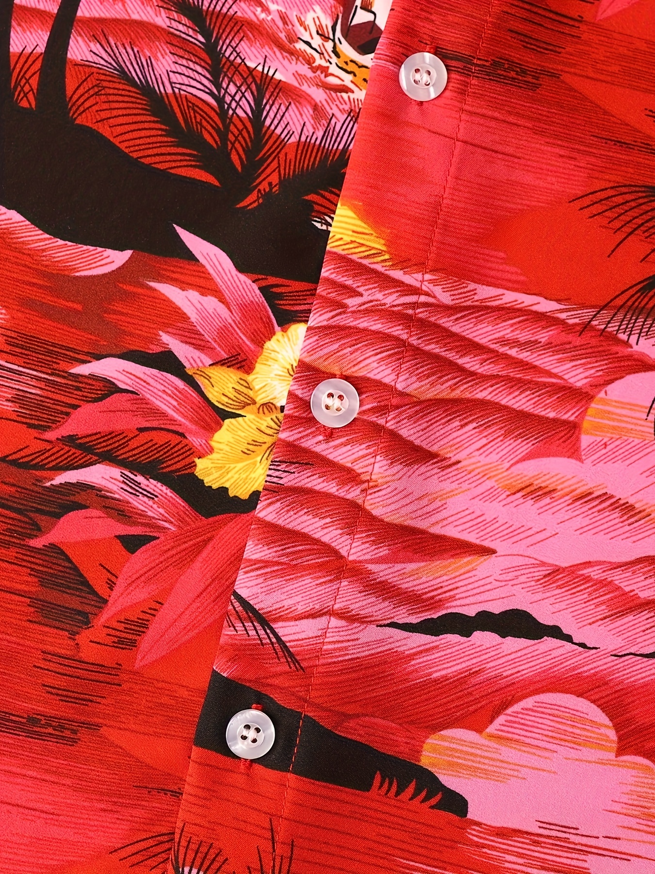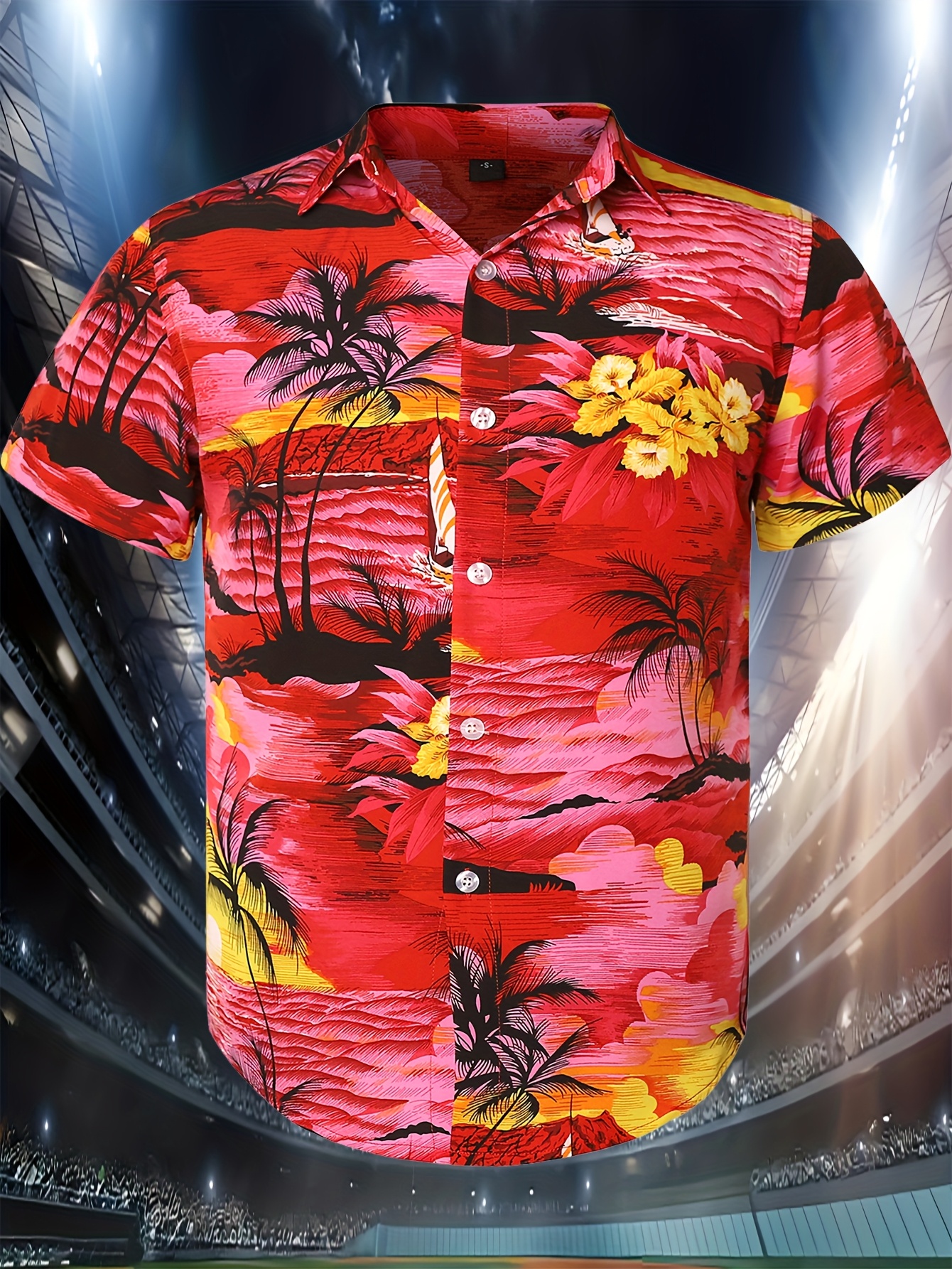 Men's Vibrant Tropical Floral Print Baseball Shirt - 100% Polyester, V-Neck, Loose Fit for Beach, Sports & Casual Outings, Sizes S-3XL, Casual Wear Shirt | Tropical Print Shirt | Details