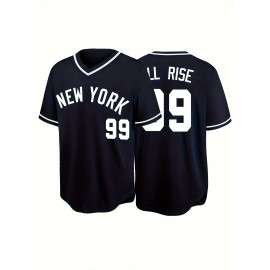 NEW YORK #99 Men's Baseball Jersey - "NEW YORK" & "Rise" Design, Breathable Loose Fit V-Neck, All-Season Casual Streetwear for Sports, Training, Parties (S-XXXL), Training Clothing, Comfortable Fit