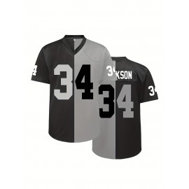 Men's Black #34 Breathable Rugby Jersey - V-Neck Short Sleeve American Football Shirt with Embroidered Lettering, Loose Fit for Training, Sports & Casual Wear, All-Season Comfort, Outdoor Activities Apparel, Sporty Vneck Design, Embroidered Detailing