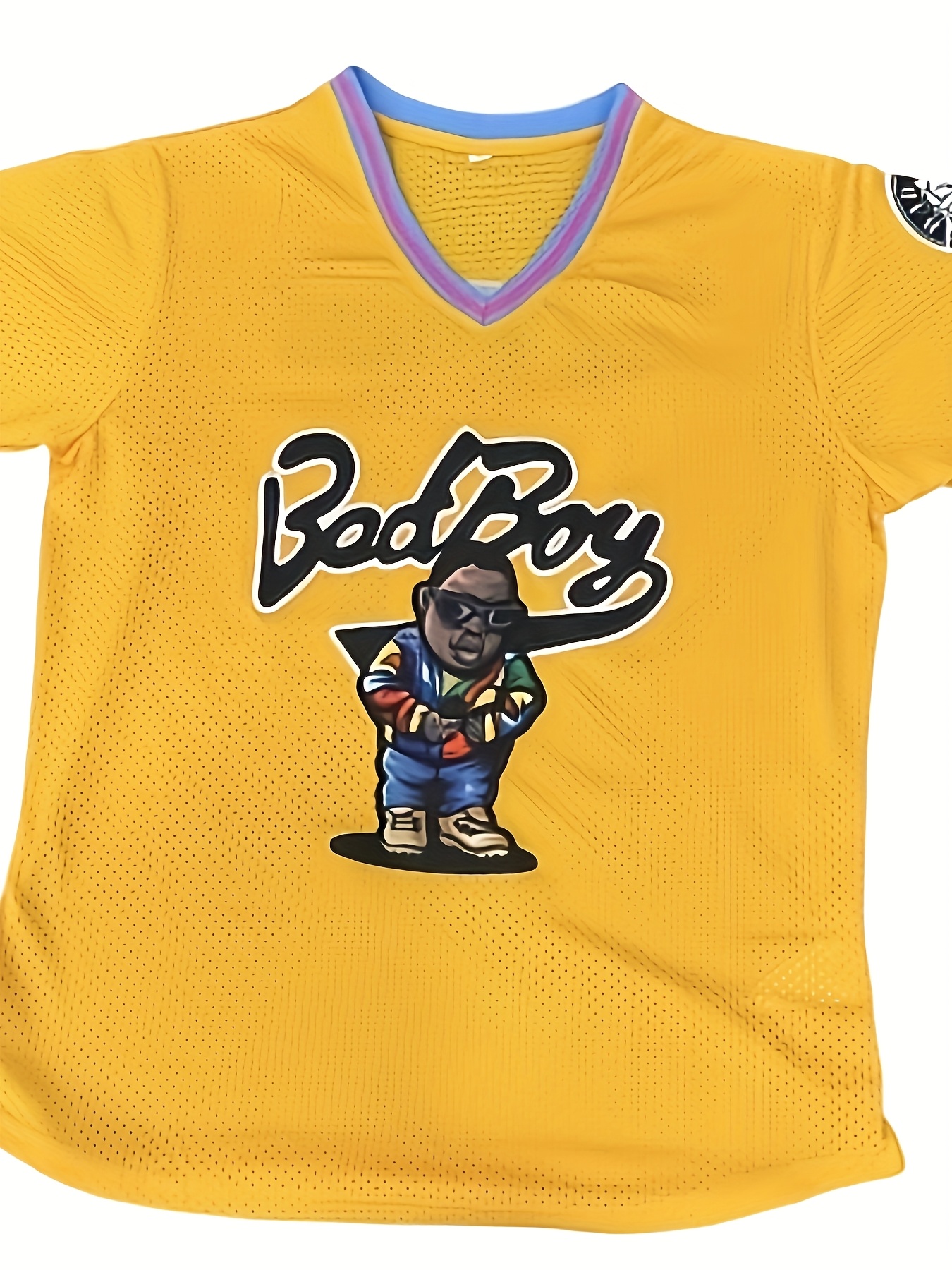 Men's Bad Boy Embroidered Basketball Jersey - Vibrant Yellow V-Neck, Moisture-Wicking & Breathable, Short Sleeve Athletic Top for Sports & Parties