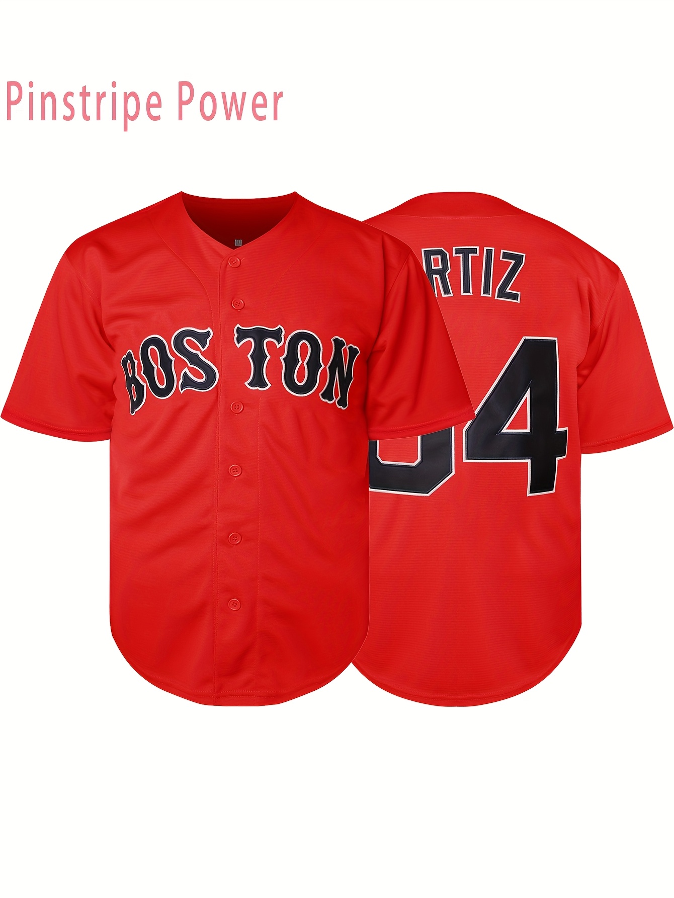 Men'S # 34 Red Baseball Shirt Retro Sports Training And Casual S-3XL Polyester Fiber V-neck Button Design Perfect For Summer Parties And Outdoor Activities