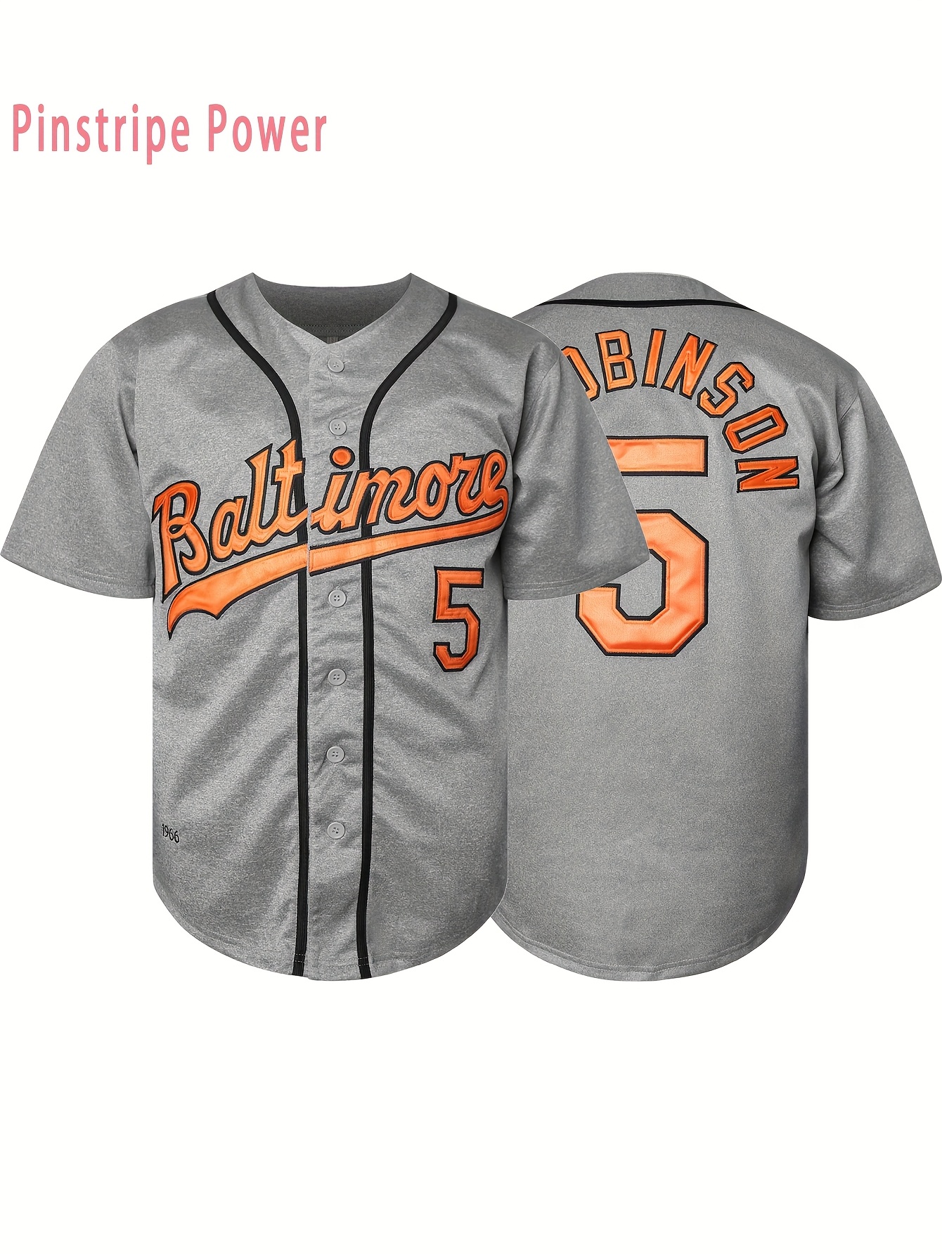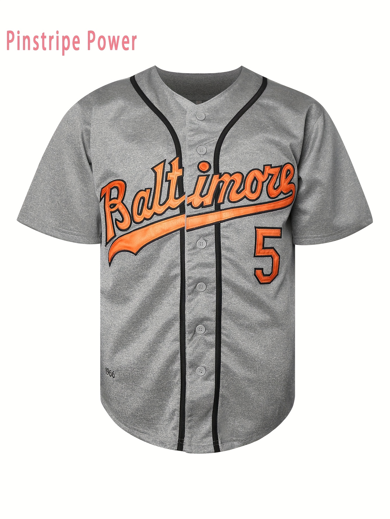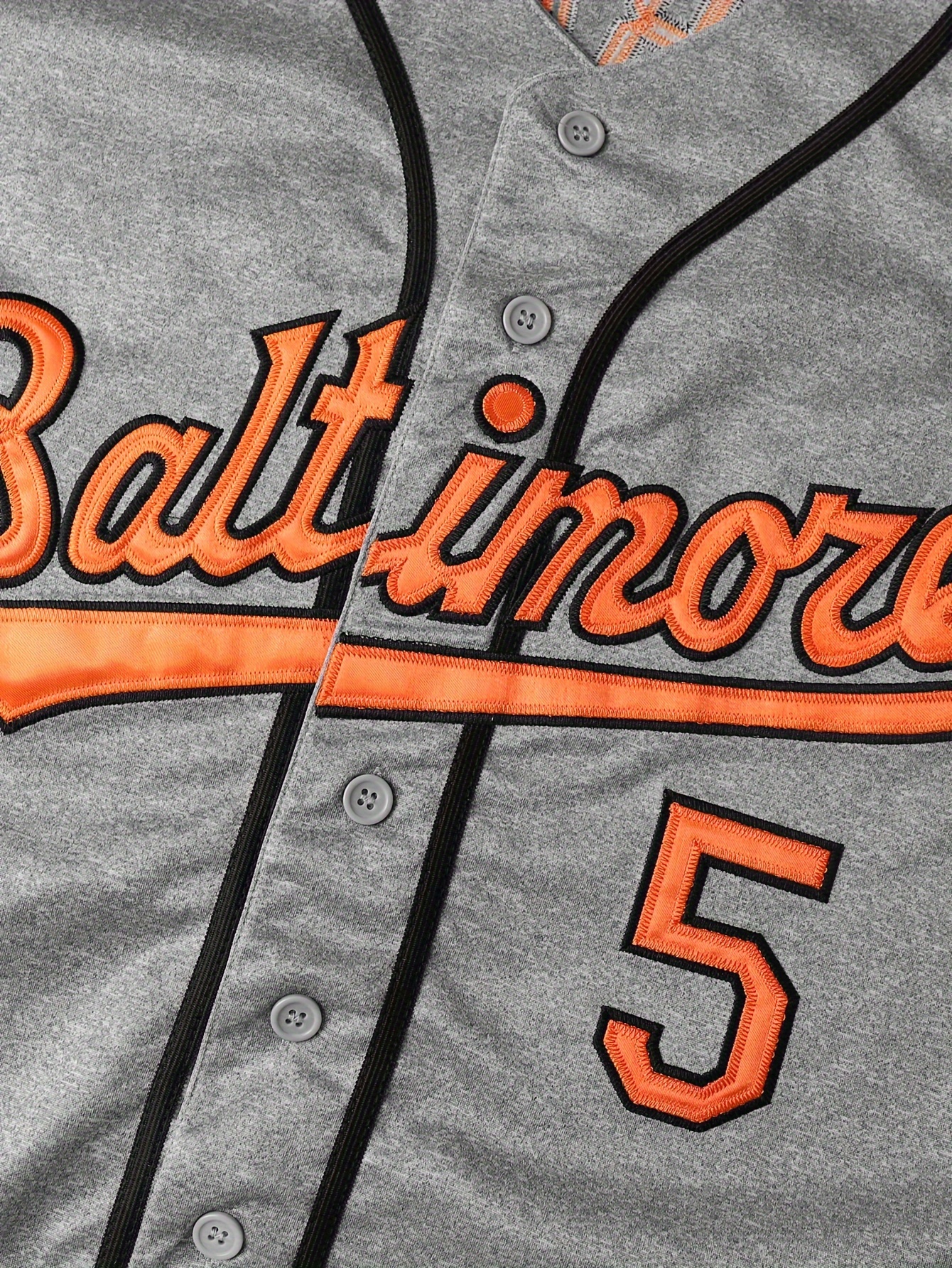 Men's # 5 Grey Embroidered V-neck Baseball Shirt - Breathable Loose Short Sleeve Shirt with Striped Accents Suitable for Casual And Sports S-3XL