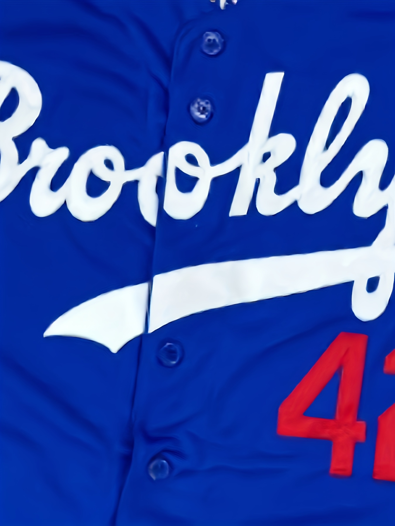 Men's Casual #42 Blue Baseball Shirt - Loose Fit V-Neck Button-Up with Brooklyn & Number Embroidery, 100% Polyester, Machine Washable, Sizes S-3XL for Training, Team Sports, Daily Wear & Outdoor Activities