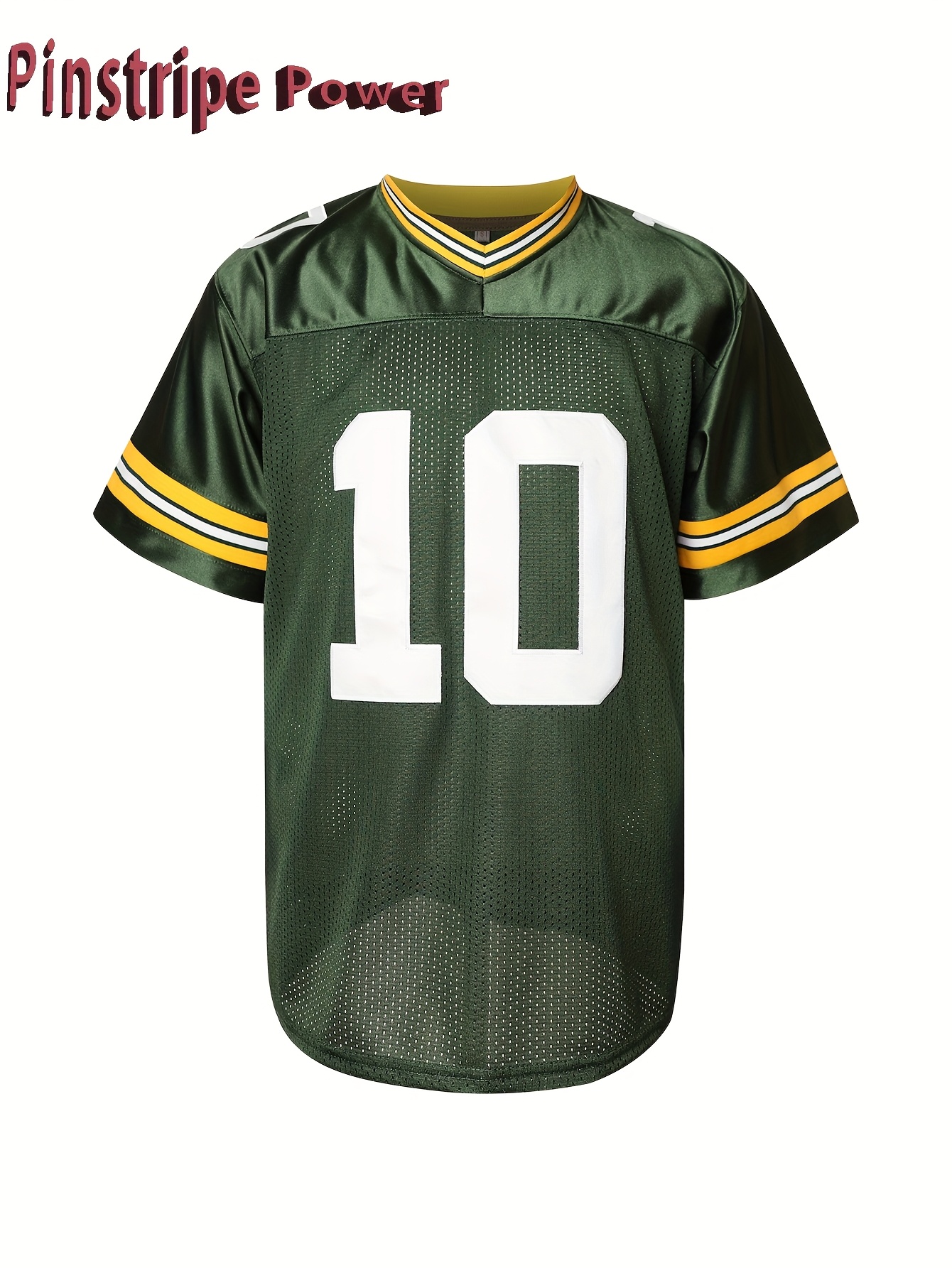Men's Green #10 Rugby Shirt - Breathable Polyester V-Neck Sports Top, Loose Fit for Running, Hiking & Casual Wear, Machine Washable, Spring/Summer/Fall, Sporty Appearance, Detailing, Comfortable Fabric