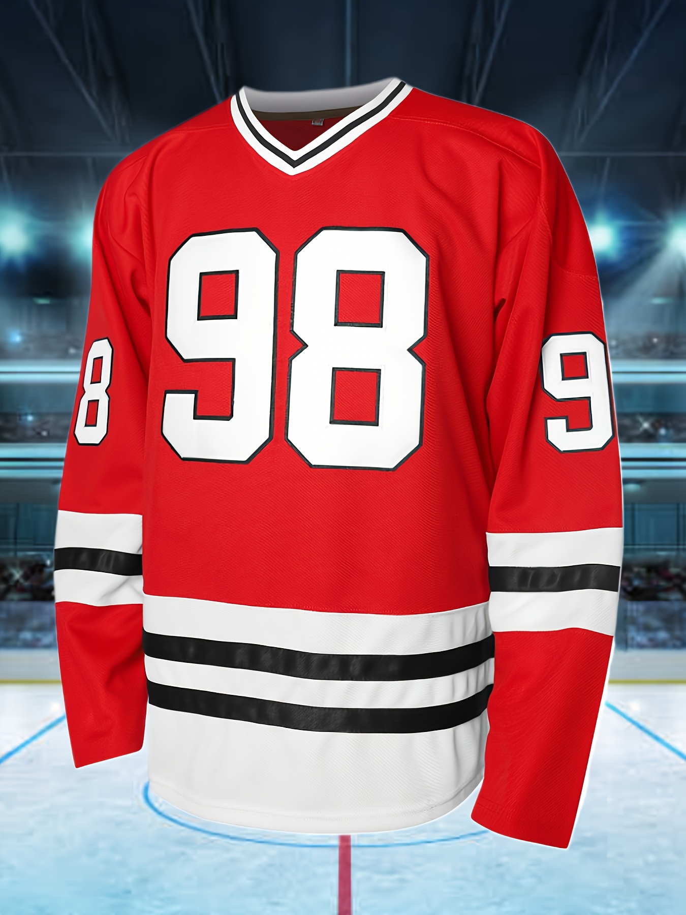 Men'S Ice Hockey Jersey Red # 98 Pullover V-neck Casual Embroidered Breathable Sports Shirt Suitable For All Seasons