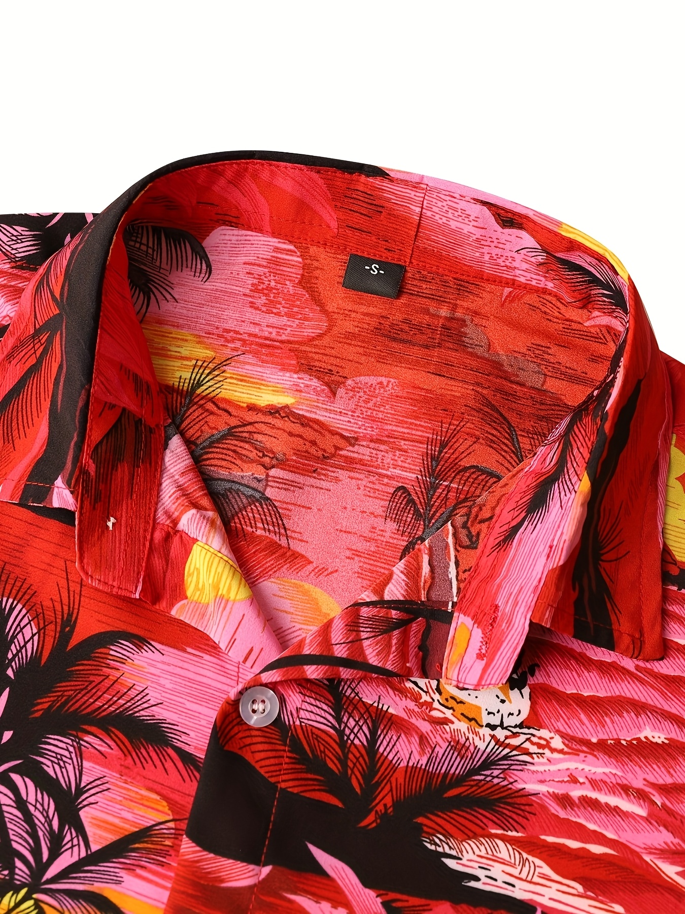 Men's Vibrant Tropical Floral Print Baseball Shirt - 100% Polyester, V-Neck, Loose Fit for Beach, Sports & Casual Outings, Sizes S-3XL, Casual Wear Shirt | Tropical Print Shirt | Details