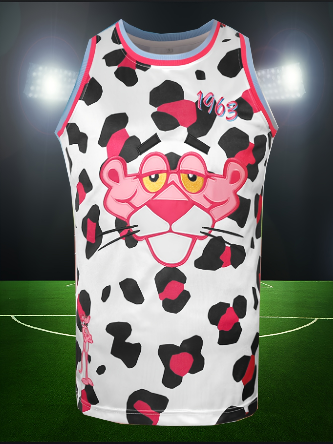 Men'S American Basketball Suit, Pink Leopard White Spotted American Basketball Suit, Suitable For Street And Team Sports, Breathable Round Neck, S-3XL