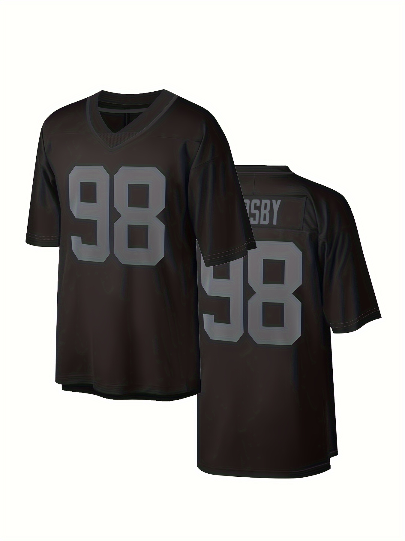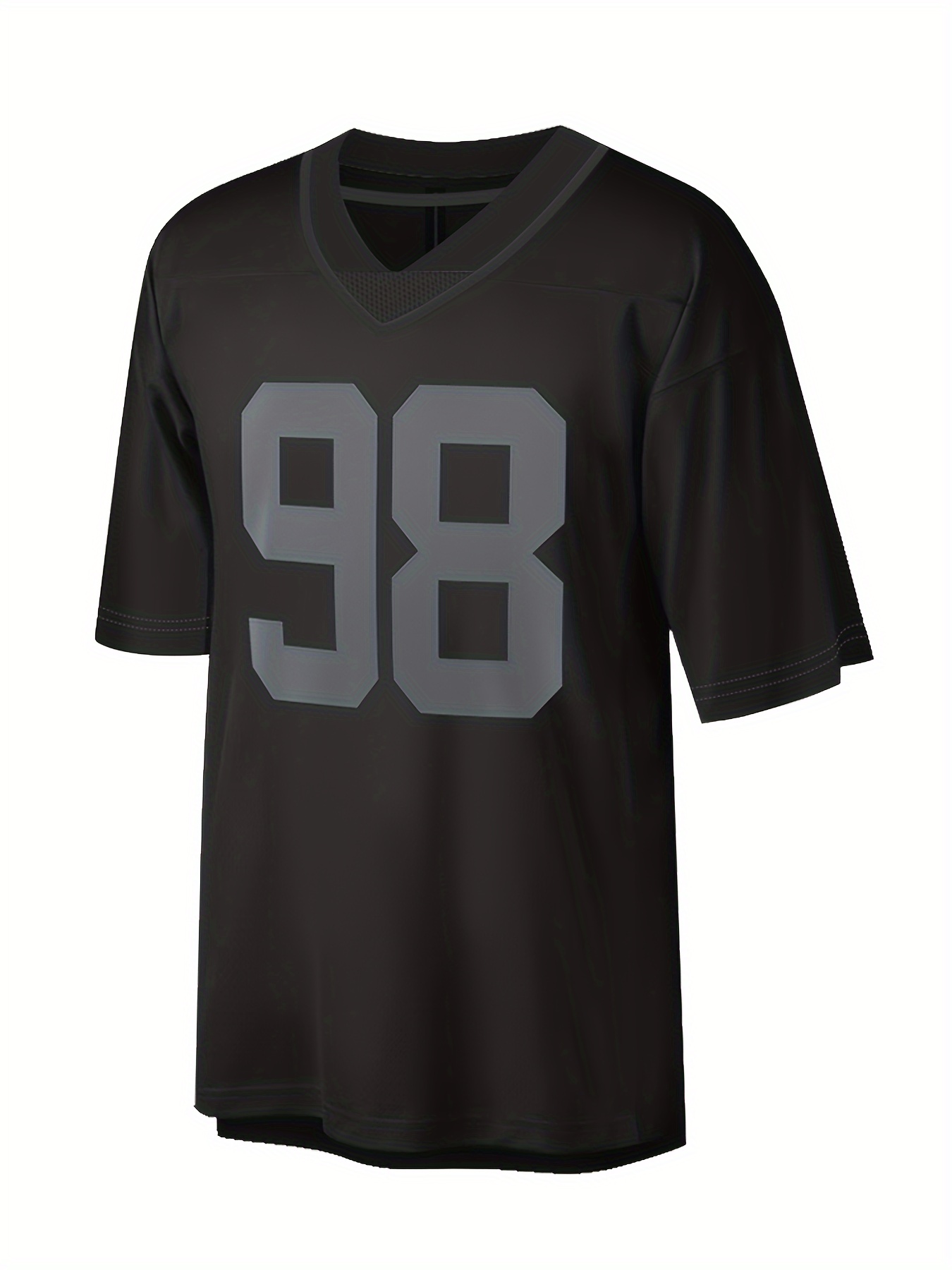 Men'S Black # 98 Breathable Rugby Shirt, Sports V-Neck Short Sleeved Training Shirt, Classic Embroidered American Football Shirt