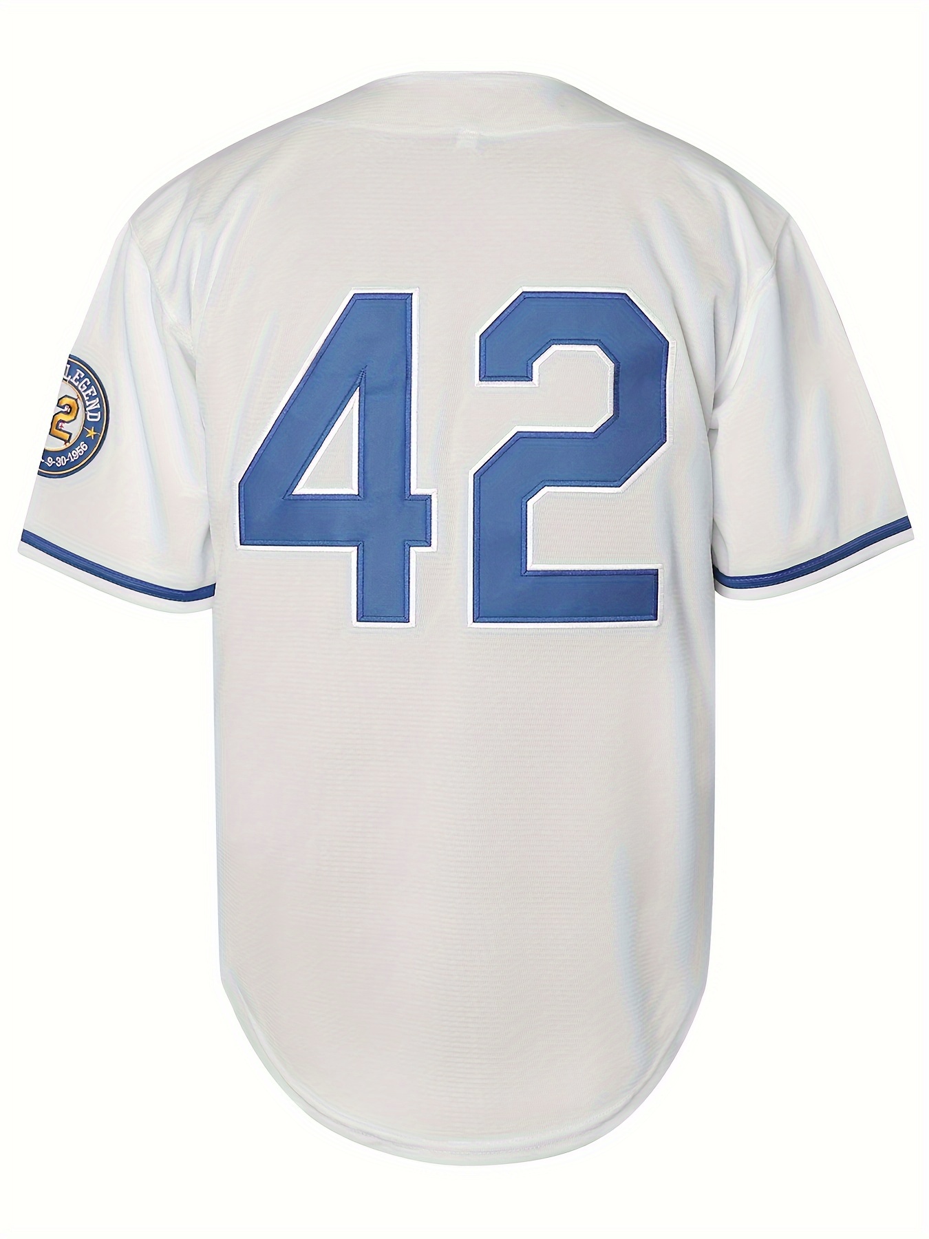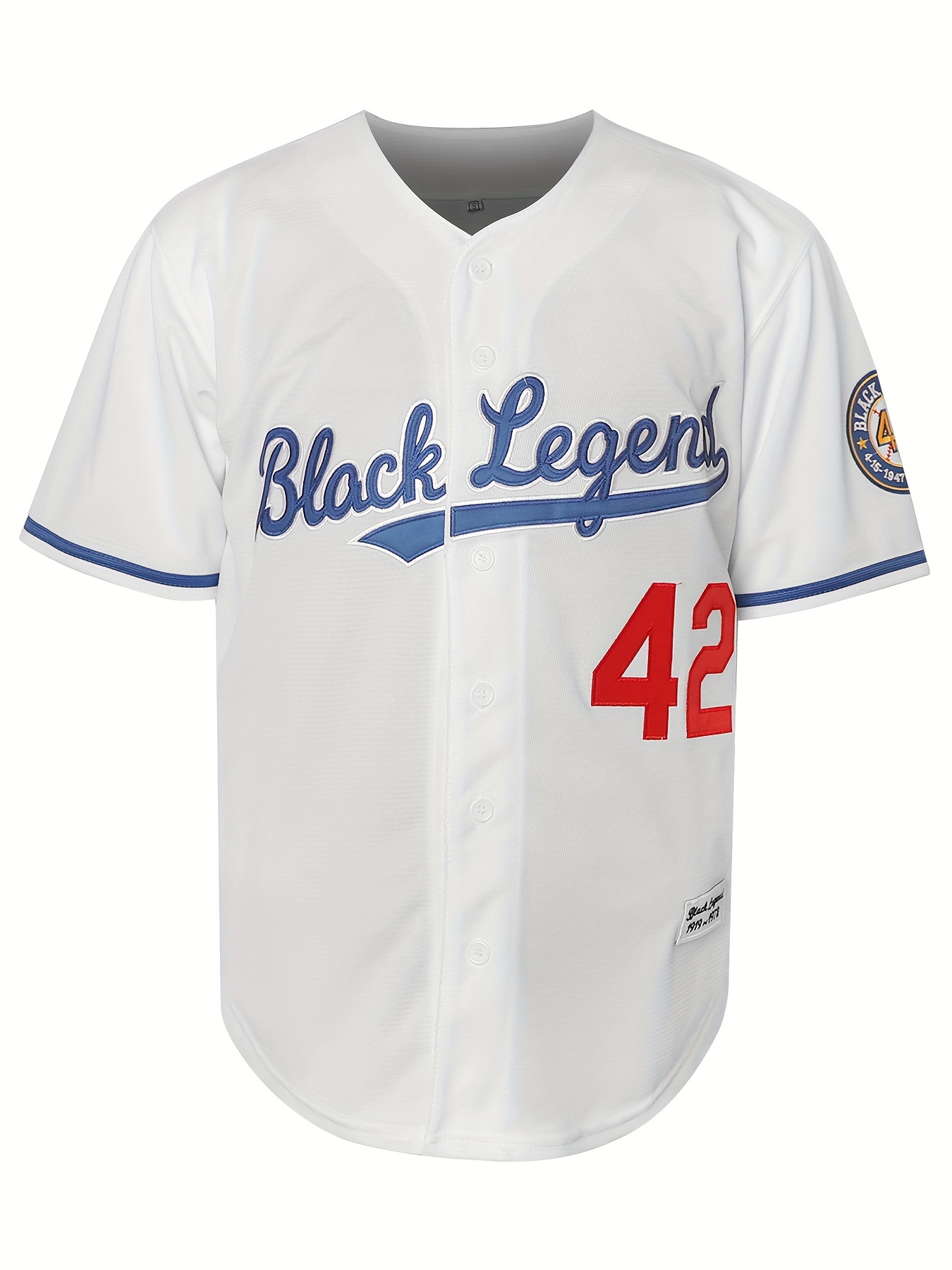 Men's Black Legend & #42 Baseball Jersey T-Shirt - Loose Fit V-Neck Button-Up, Breathable Polyester for Outdoor Sports, Training, Casual Wear & Parties (S-3XL)